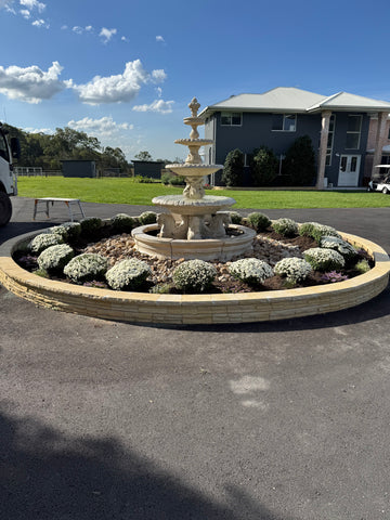4 tier Quarter horse fountain with traditional acorn and traditional pond surround