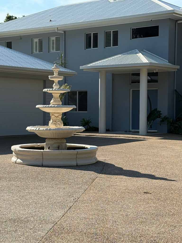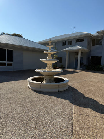 4 tier Italian fountain with traditional acorn and traditional pond surround